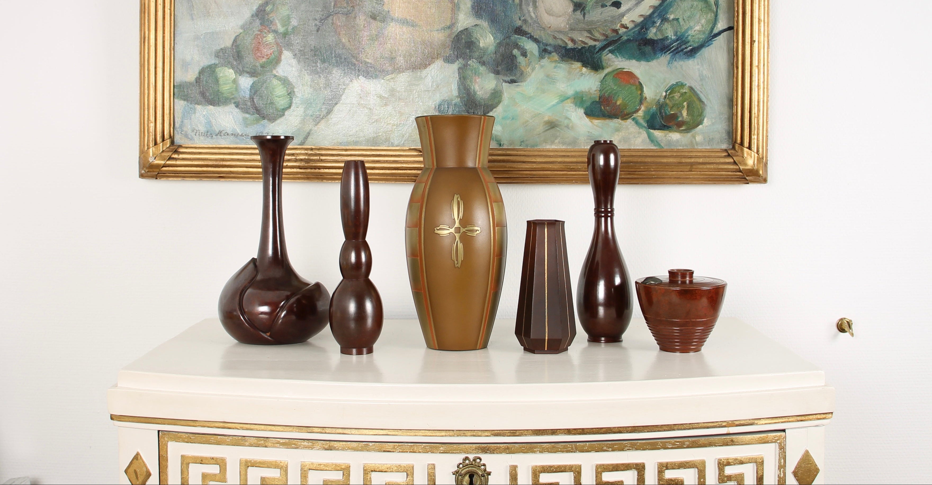 Vintage Japanese Bronze Vase with Oval Motifs