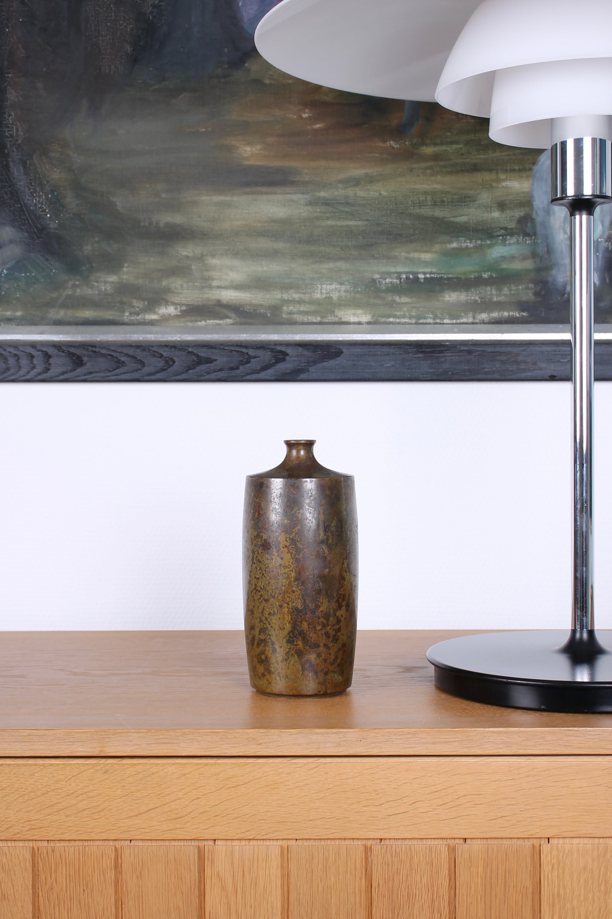 Vintage Japanese Bronze Vase Patinated Brown and Gold